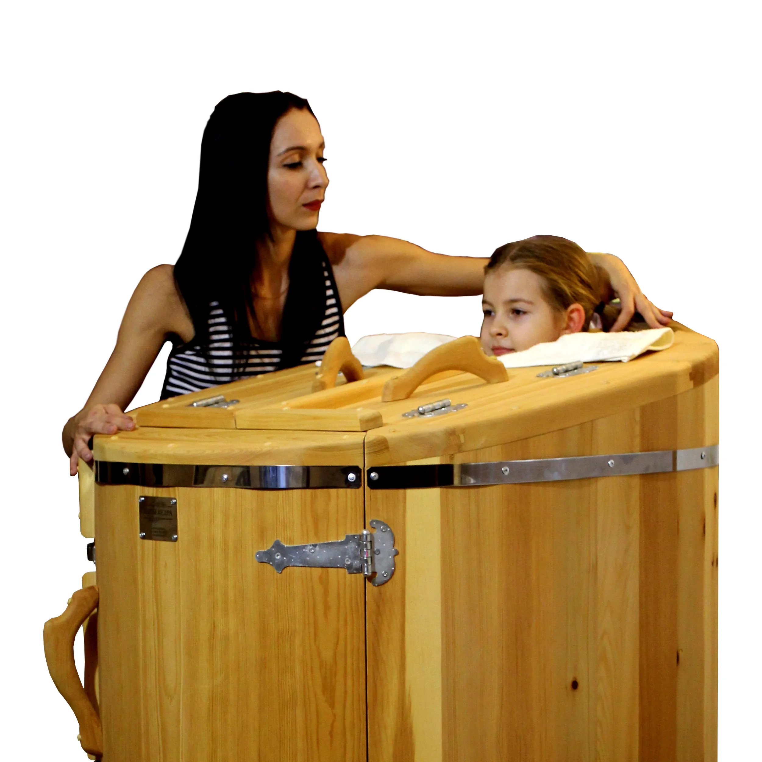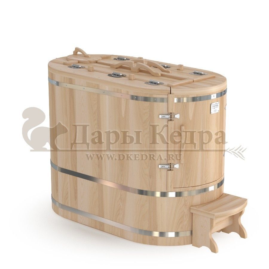 Кедровая фитобочка полулежачая - это мини парная, которую можно использовать не только в спа-салонах, но и дома. Модель этой бочки наиболее комфортна, так как позволяет принимать процедуры полулежа. Толщина стенок составляет 40-45 мм, что позволяет увеличить срок службы изделия. Фитобочка оборудована откидными створками, дверцей и отверстием для головы. Во время парения человек находится внутри кедровой бочки, а голова снаружи. Благодаря этому исключается возможность перегрева. Подлокотники, подспинник из кедра и внутренние ручки делают эксплуатацию фитобочки более удобной.